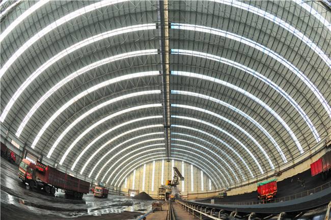 堆场料场封闭式主体结构为新型的钢兴化网架结构,维修结构为钢结构兴化不锈钢板和纤维增强塑料灯具,其外形以兴化网架式和平板为主,连接柱兴化施工自由,设置喷雾自动喷水系统,从而可以实现棚内所有物料的覆盖,减少物料在运输过程中的损耗,起到防尘的作用,减少工厂关闭后的二氧化硫排放量,50mg/m3颗粒排放量小于10mg/m3,非常适合低能耗。低闭库自动感应反应对库存轮胎进行清洁,确保轮胎不受道路污染;封闭的储存区可从源头控制粉尘污染,控制无序排放。
